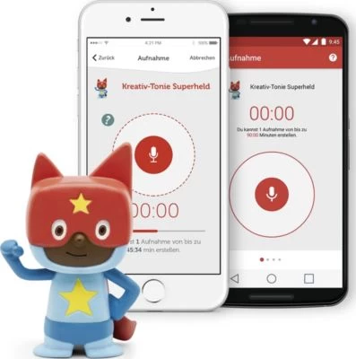 Tonies sind Hörfiguren für die Toniebox. Sie machen Hören anfassbar, denn mit ihnen bedient man die Toniebox. Man kann sie aber auch sammeln und mit ihnen spielen. Der Kreativ-Tonie bietet 90 Minuten Spielzeit für eigene Hörabenteuer oder Musik. Für die Nutzung des Kreativ-Tonies wird ein Toniecloud Kundenkonto benötigt. Alle Inhalte des Kreativ-Tonies können dort verwaltet werden. Die Registrierung für das Kundenkonto ist kostenlos. Mit der dazugehörigen, kostenlosen Smartphone-App können eigene Sprachaufnahmen aufgezeichnet und dem Kreativ-Tonie zugewiesen werden.